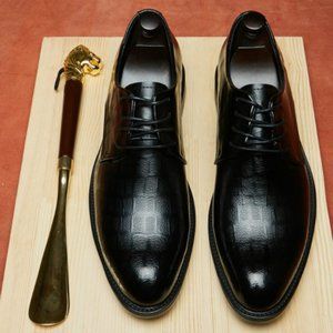 Men's leather shoes men's summer suit leather shoes men's lace up business dress leather shoes pointed Leather Men's shoes Derby shoesand exquisite