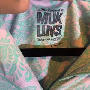 Mux lux Green and Pink Paisley Short Sleeve Collared Patterned PJ Shirt small