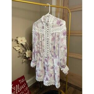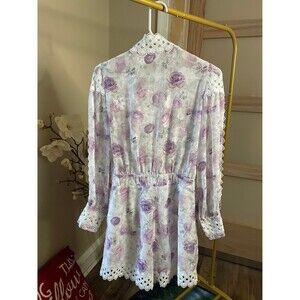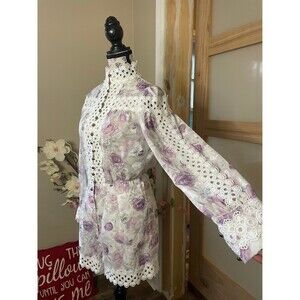 Muy Muy Lace Embroidered Romper Sheer White Purple High Neck SIZE Small.