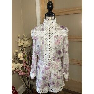 Muy Muy Lace Embroidered Romper Sheer White Purple High Neck Sz Small