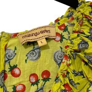 Muzungu Sisters 100% Cotton Yellow Berry Snail Acid Julia Mini Dress Size Large