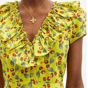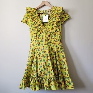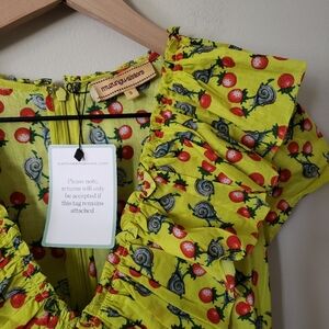 Muzungu Sisters Yellow Florence Snail print Organic Cotton Mini Dress Sz Small
