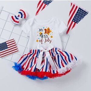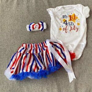 NWOT My 1st 4th of July Outfit 3PCS Tutu Skirt Set, Short Sleeve Romper with Tulle Skirt Headband