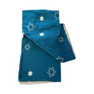 My 1st Hanukkah Blue & Ivory Knit Reversible Baby Blanket and Bib Set NWT