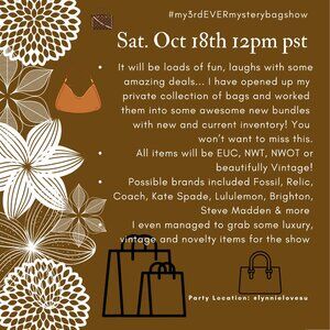 @mvemily @mrc624 @kfab1111 @makewisechoices @jackieloos @aloos14 @boogeboutique @ifnotnowwhen @gypsycwgrl @trixieleec1 @erica42006 @chloesklazet @posh_daniellexo @@dawn_rakiey @djgking @irishmom456 @poutypants @jrhaugh77 @tanyamscloset @spicy_rita @vondanwearhaus @kristiwenth @nene_glam4u @greentmtmama @2bshandbags @galatea921 @bernbee @blantonbrandy @mod4_2bshandbags @stagesnpages I got my next mystery bag show scheduled!!! Hope you can join me!