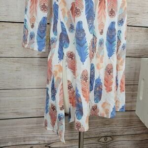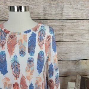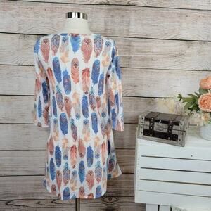 My Amelia James Feather Boho Tunic Size Extra Small. Can be worn as a tunic or a dress (if you're short like me). Gorgeous watercolor style feathers make this great boho tunic. Crew Neck. Elbow Length Sleeves. Swing style top. Size Extra Small. Excellent Used Condition. 65% Polyester, 32% Rayon, 3% Spandex.
