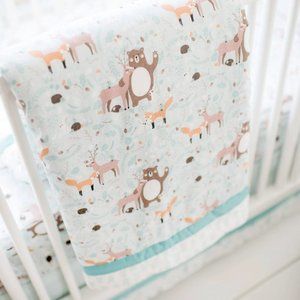 My Baby Sam Forest Friends Baby Bedding Set. Includes Mobile. Gently used. Smoke, pet free home.