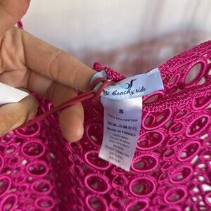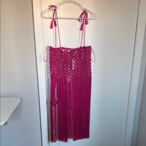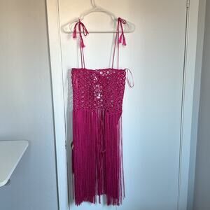 My Beachy Side Biscotti Crochet Fringed Knee Length Dress Small Fuchsia Pink