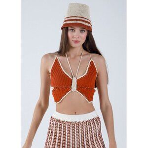 My Beachy Side Crochet Beaded Butterfly Halter Top Flame Womens M/L