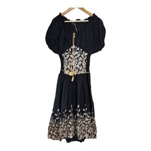 Made of 100% cotton with our nature-motif 3D embroidery, this midi length dress has a smocked middle with an embroidered panel at front, and an adjustable gold tie at bust to wear the dress on, or off your shoulders to evoke a classic peasant dress style. For exploring everywhere from your garden to the small towns of Italy.