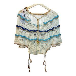 My Beachy Side Rima Scalloped Crop Top Medium Crochet Malibu Blue $235 Boho