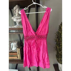 My Beachy Side Ruby Crochet Open Front Mini Dress Fuschia Womens Size Medium