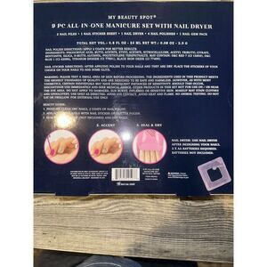 My Beauty Spot Exclusive Nails Polish Accessories & Dryer 9 Pc Set. White in color. New in box.