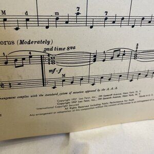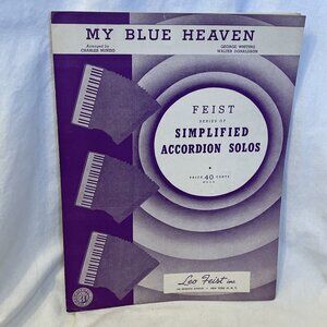 This vintage accordion sheet music is a must-have for any pop music lover. Published by Leo Feist, Inc. in 1947, this simplified version of "My Blue Heaven" by Whiting and Donaldson is perfect for beginner accordion players. The sheet music features clear notation and is in excellent condition. With its catchy melody and timeless lyrics, "My Blue Heaven" is a classic that is guaranteed to delight audiences of all ages. This unit quantity sheet music is a rare find, and is sure to be a treasured addition to any collection. Add it to your cart today and experience the joy of playing this beloved tune on your accordion. Minor age wear. See pictures for condition details.