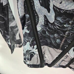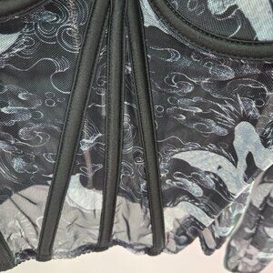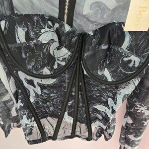 My Boo Black White Swirl Corset Bustier Back Zipper Sheer Top Size Large