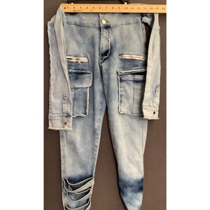 My Boo Denim Distressed High-Waisted Jeans with Tie Belt Size Small Cargo Pocket