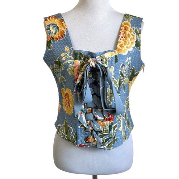 My Boyfriend's Back Womens Floral Quilted Bustier Corset Top SZ Large Blue USA