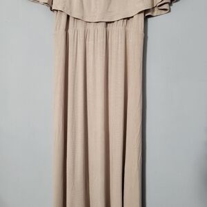 My Bump Beige Off The Shoulder Ruffle Maxi Dress NWT