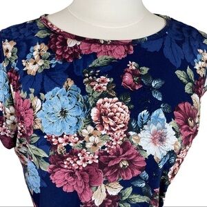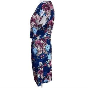 My Bump, Luke 2:40, XL short sleeved navy floral maternity dress. This beauty has a scoop neck, wrap around sash and ruching around your growing baby. Approximate flat measurements are armpit to armpit 19" and shoulder to hem 41".