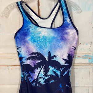 My Charmo Swimsuit Yoga 🧘 Tropical Print Boyshort Bottom Racer back top Size M