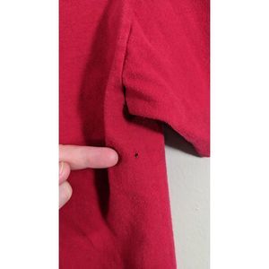 Preowned with wear including fading (esp at collar and seams) visible hole on back, small hole at one pit, some wonky stitching at hem