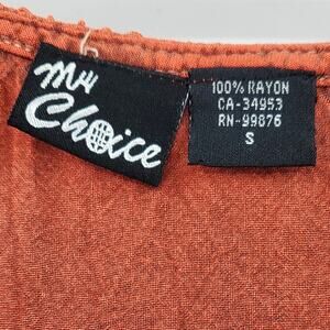 My Choice Burnt Orange Boho Embroidered Flowy Smocked Tunic Top Women’s Size S