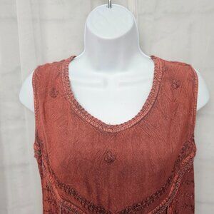My Choice Salmon Mineral Washed Sleeveless Mini Dress Boho Hippie Granola OSFM