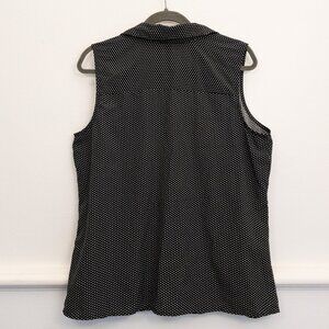 My Collection Black White Polka Dot Sleeveless Blouse XL | Button Front Stretch