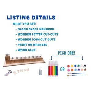 My DIY Hanukkah Menorah Kit, Children's Personalized Wood Alphabet Block Menorah