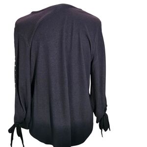 My Danielle Elegant Black Top with Pearl Accents Tie Sleeves Women size L
