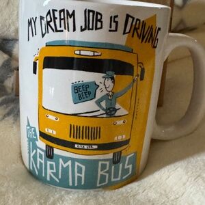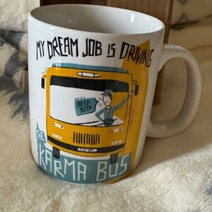 Up for your consideration is a BRAND NEW, ceramic mug that reads: "My Dream Job is Driving the Karma Bus", from Primitives by Kathy. (the outer packaging shows some slight dents but shouldn't matter as this is thrown away. There is NOTHING wrong with the mug..)