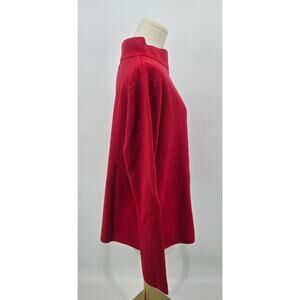 A bold and classic sweater in True Red with a modern mockneck silhouette. Soft and lightweight with a smooth drape, thanks to its viscose/nylon blend (55% viscose, 45% nylon). Perfect for layering or wearing on its own for a polished, timeless look.