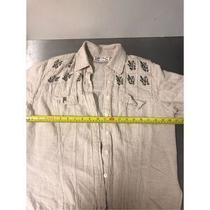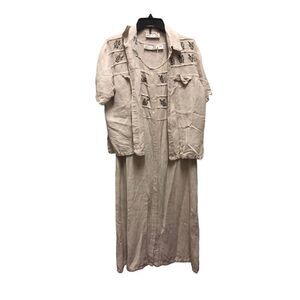 My Fair Lady Women’s Two Piece Cream Flower Embroidered Button Up Sleeveless Dress and Cover Size M Preowned in very good condition