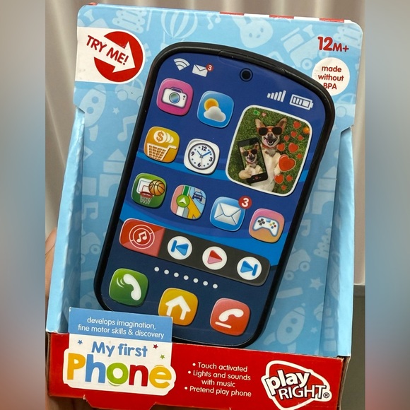 Engage your child with the My First Phone. This blue toy phone offers touch-activated lights and sounds, encouraging imaginative play.