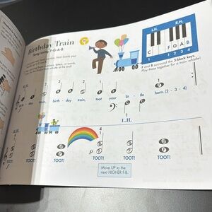 Colorful piano lesson book for young beginners. Features engaging illustrations. No tears, good condition. CD never used.