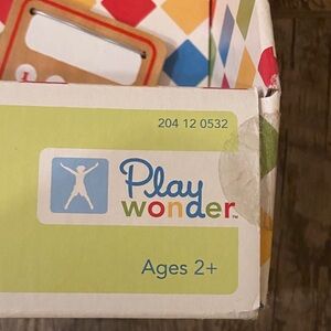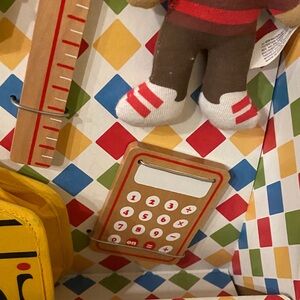 This is a Playwonder My First School Supplies Set, a soft toy set for toddlers.