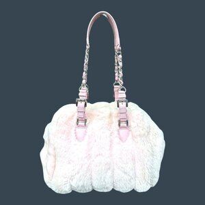 Elevate your style with this plush faux fur handbag, perfect for adding a touch of luxury to your daily ensemble. Its soft pink hue and elegant chain straps exude sophistication, while the spacious interior offers practical utility for your essentials. A statement piece to cherish.