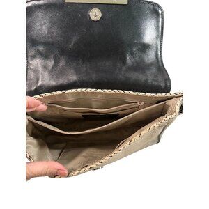 MY FLAT IN LONDON White Purse, Ivory Black Chevron Tweed Shoulder Bag Bow Accent