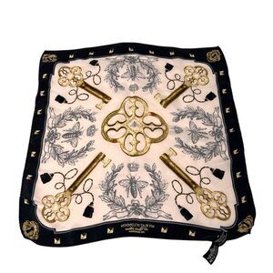 My Flat In London 100% Silk Gold and Black Scarf with Key Lock Motifs