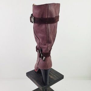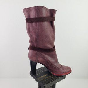 My Grey by Grey Mer Italian Nubuck Leather Wine Merlot Mid Calf Pull-on Boots