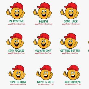 ✔️ 15 unique My Happy Golf balls, each with a different motivational message (e.g., “Be Happy,” “Ready to Roll,” “Stay Focused”)
