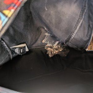 Outer part of backpack is in excellent condition. See pictures. Inside bottom part has a stain.. No rips or other flaws, but has that one stain.