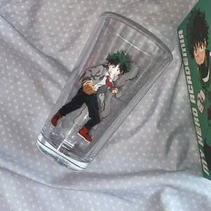 My Hero Academia pint glass featuring Izuku Midoriya. Vibrant design with character illustration.