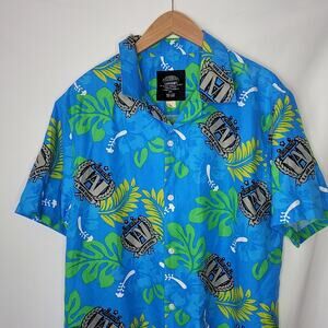 My Hero Academia- Men's Blue Button up short sleeve top- size Large