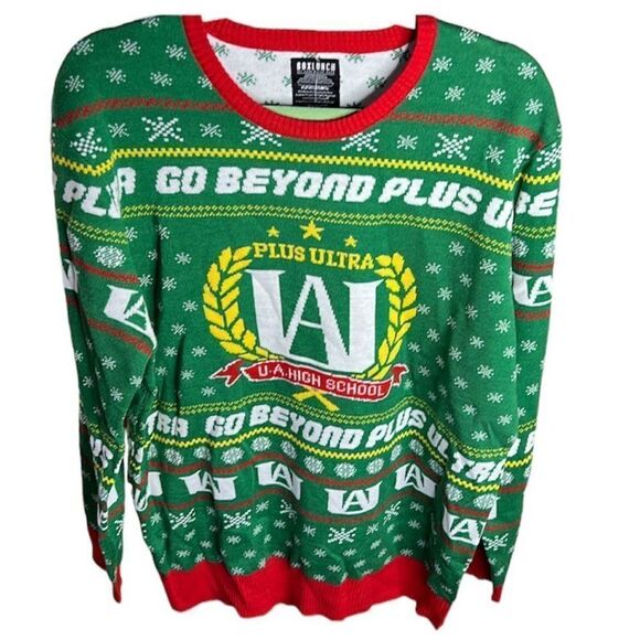 NWT My Hero Academia Ugly Christmas Sweater Extra Large Green Anime Box Lunch