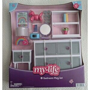 My Life As Bedroom Play Set 18" Dolls 20 Piece Set Drawers Lamp Bank Decorations