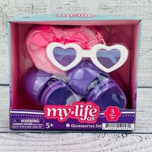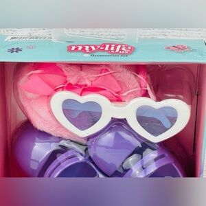 My Life As Heart Glasses Furry Heart Bag Purple Shoes Accessories Set NEW