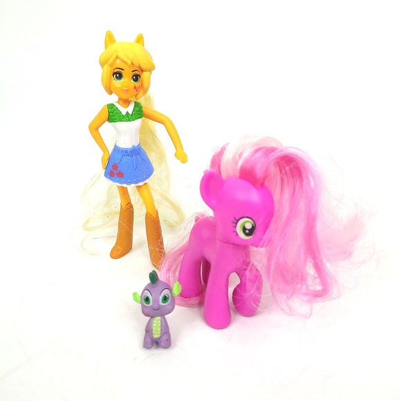 Pre-owned condition. Normal signs of use. Approximate size: Applejack - 5 1/8" T; Cheerilee - 3 1/8" T; Spike The Dragon - 1 1/8" T. Please see all photos for further description and condition.