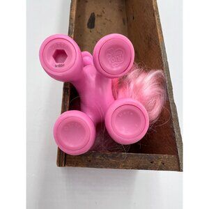 These vintage My Little Pony figures feature vibrant pink and purple bodies, adorned with glittery hair. Excellent for collectors or imaginative play.