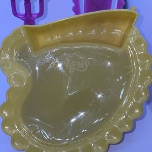 My Little Pony MLP Accessories Lot Hasbro Purple. 4 accessories: 2 candle stands, 1 sink with rotating mirror, 1 cushions rug